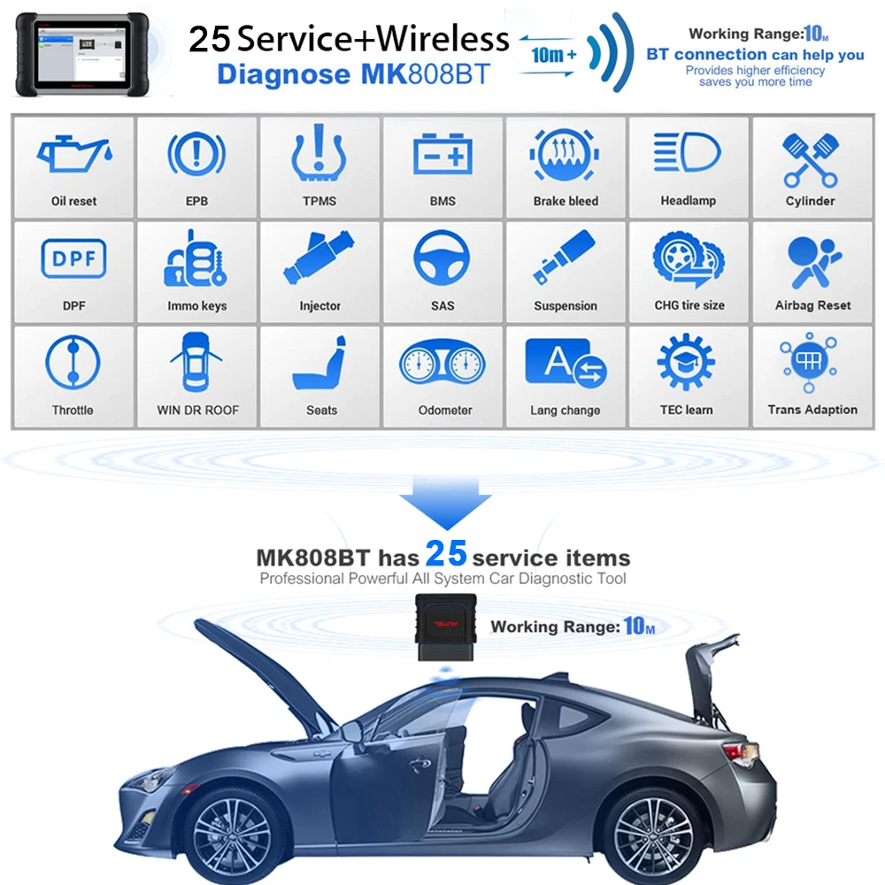 Autel Maxicom Mk808bt Car Obd2 Diagnostic Scan Tool Wireless Code Reader All System Diagnosis Scanner Upgraded Version Of Mx808 Aliexpress Mobile