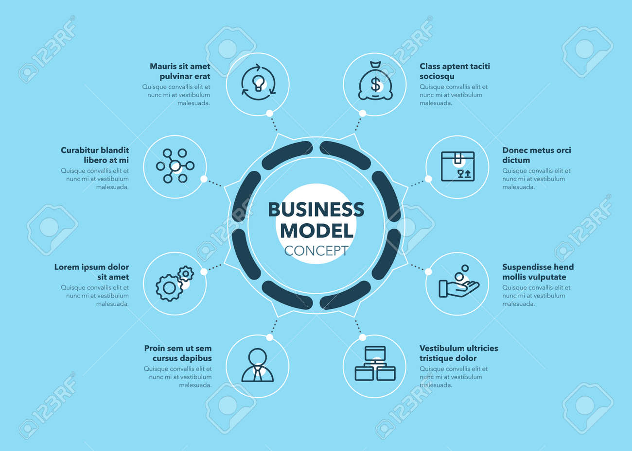 Simple Concept For Business Model Diagram With Eight Steps And Place For Your Description Blue Version Flat Infographic Design Template For Website Or Presentation Royalty Free Svg Cliparts Vectors And Stock